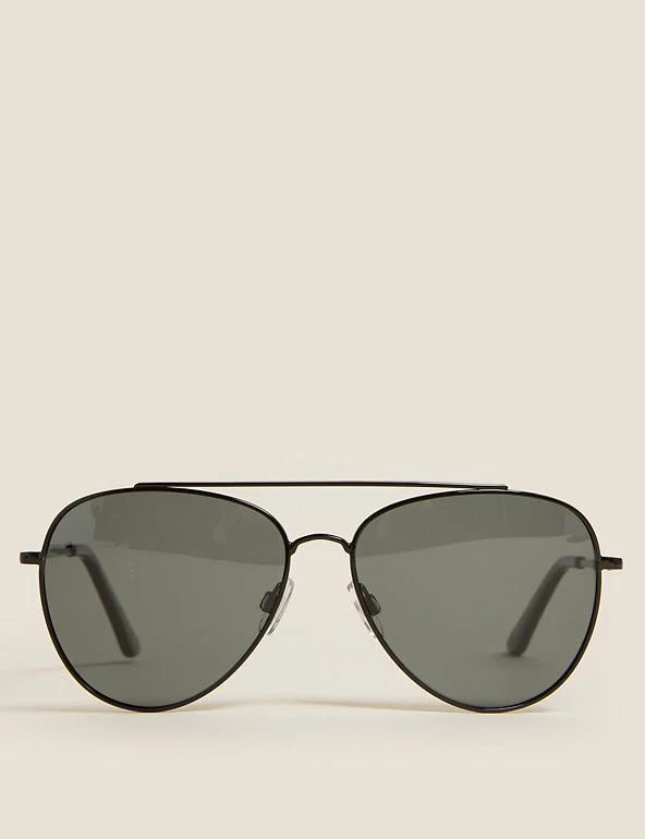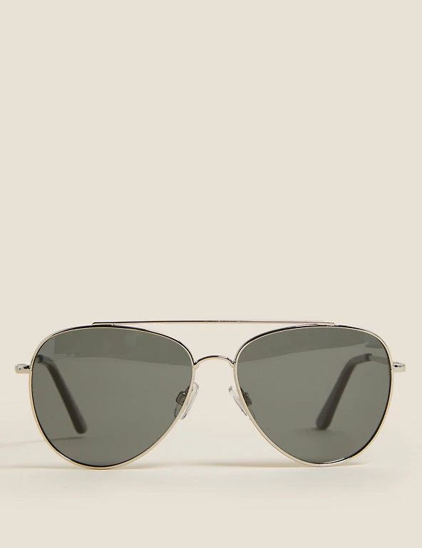 The classic curves of these metal aviator sunglasses create timeless style. Design features spring hinges for extra comfort and a better fit along with polarised anti-glare lens. UV Category 3: Excellent protection from the sun’s UV rays and suitable in intensive sun. Come with a soft carry pouch.