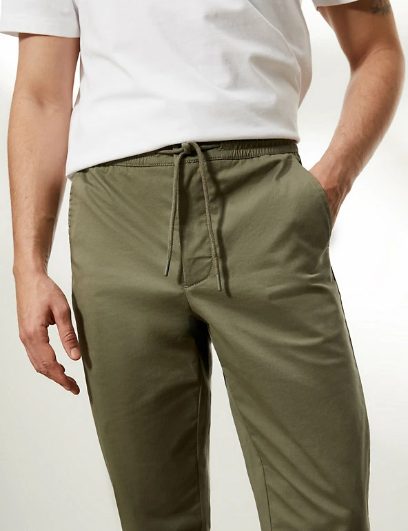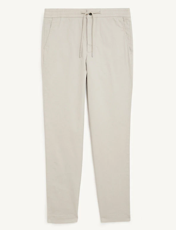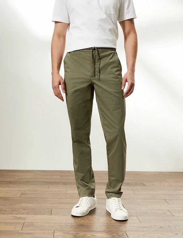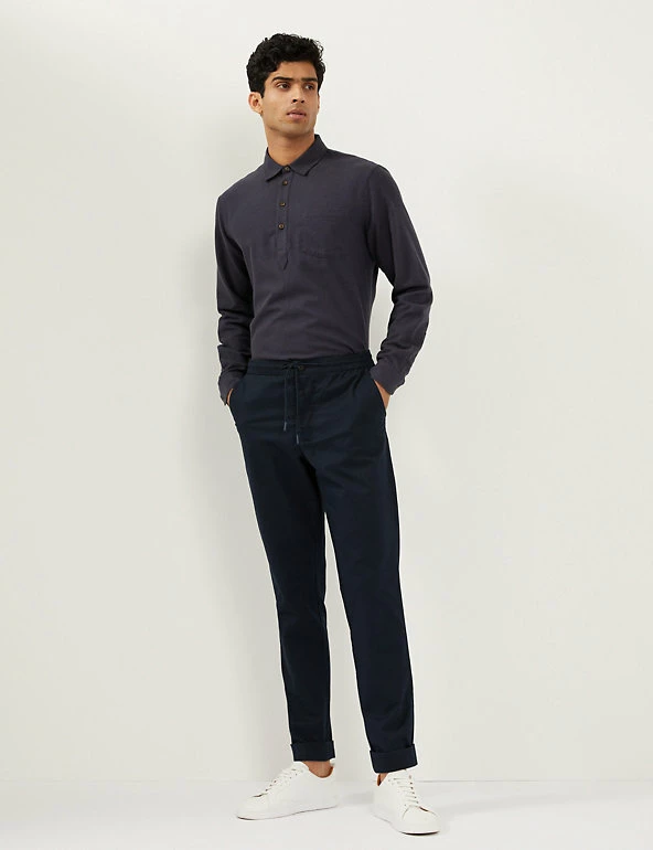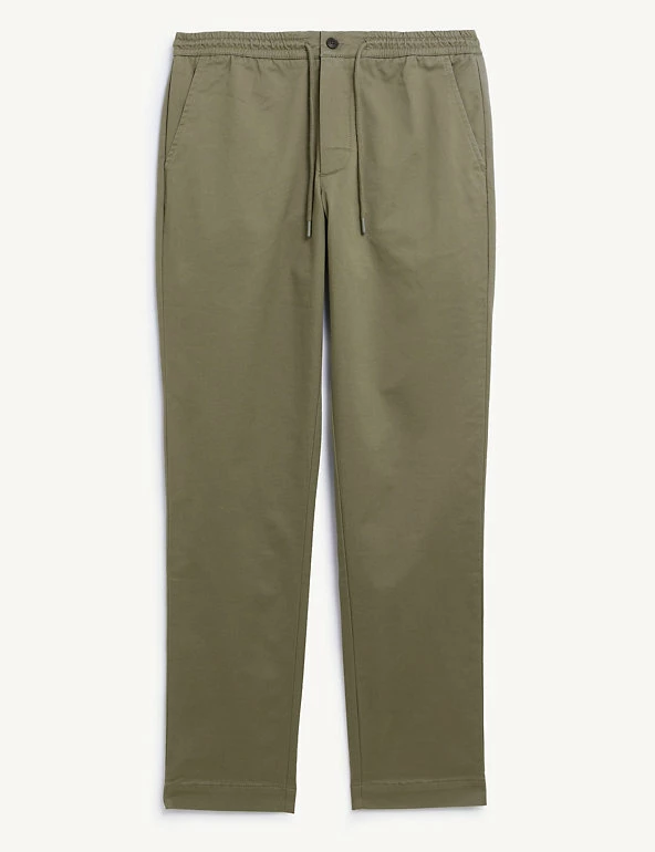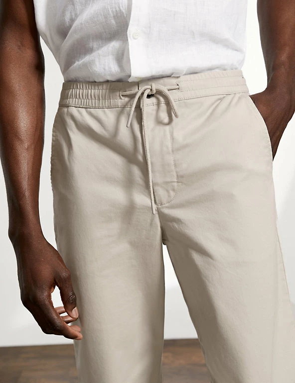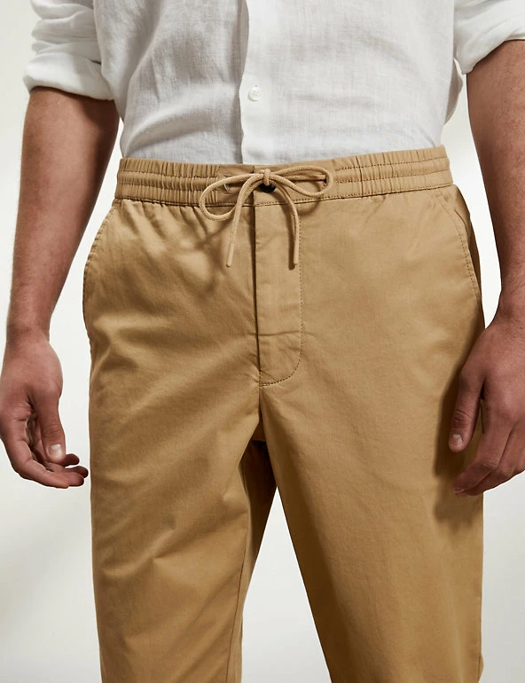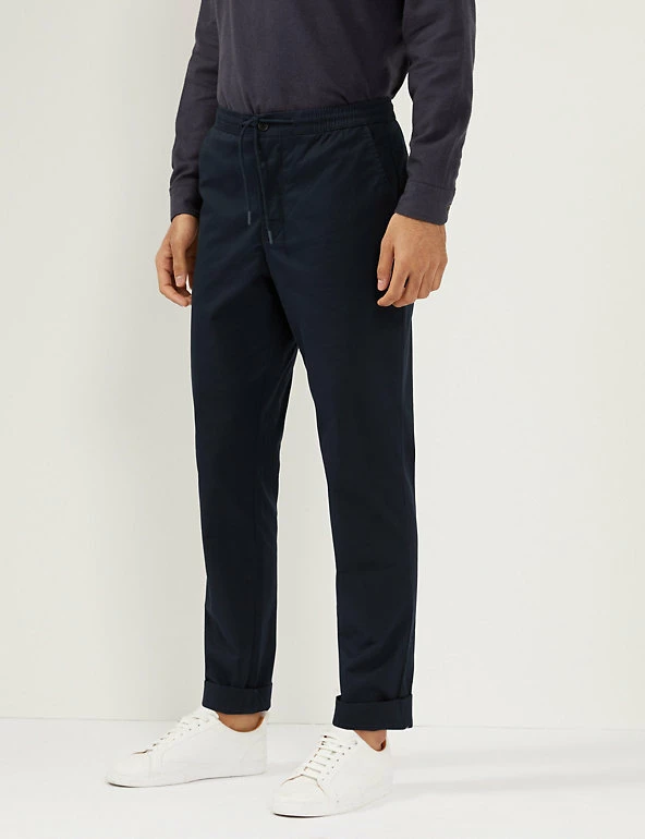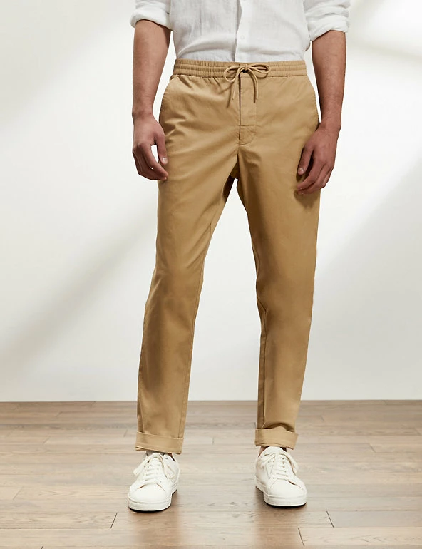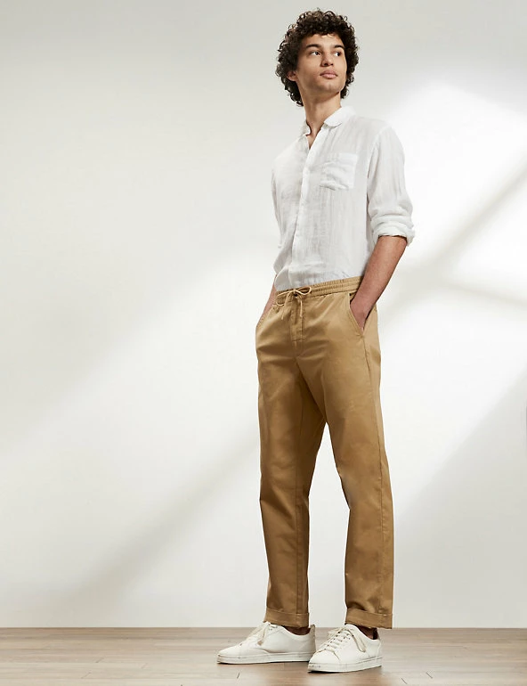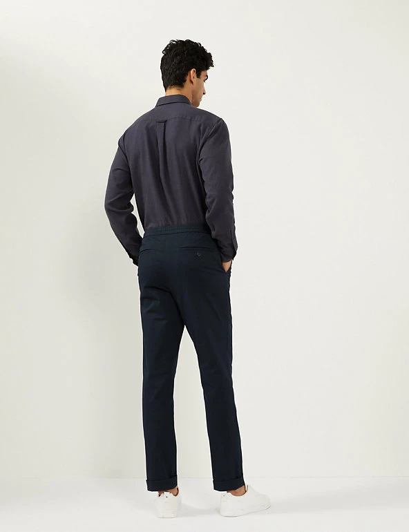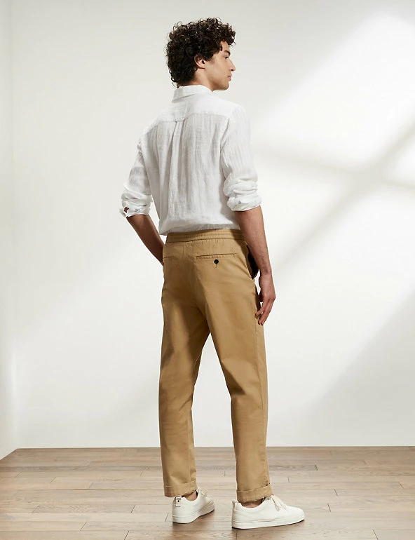 These cotton-rich trousers mix formal wear with casual comfort. They are cut in a regular fit with a drawstring waist and made from a soft, stretchy fabric. The trousers feature chambray detailing on the roll-up hem for a versatile styling option and discreet branding.