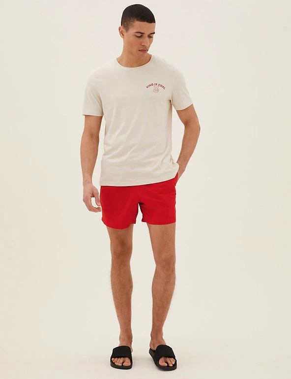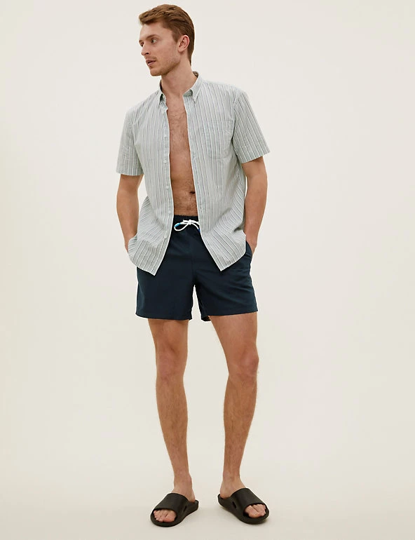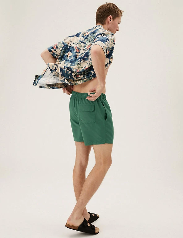 These quick-drying swim shorts are ideal for days when you’re in and out of the water. Regular fit, with a secure drawstring fastening. Pockets at the hips add useful storage, and a velcro pocket at the back keeps valuables safe. Our Sun Smart fabric gives UPF50+ protection from UV rays. Made with recycled polyester.