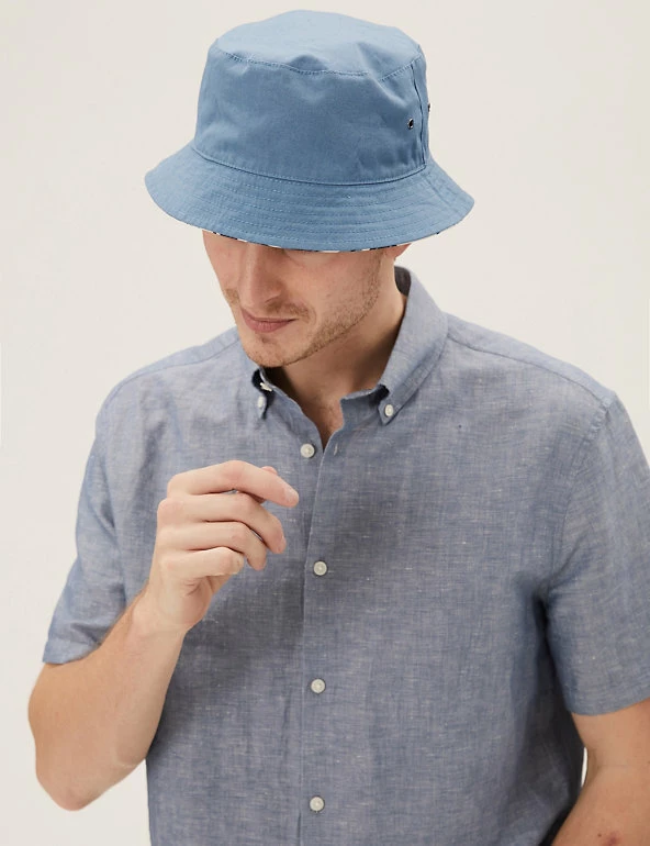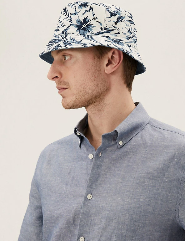 Save time and packing space with this pure cotton reversible bucket hat. Versatile, denim-like finish on one side and an artistic floral print on the other. Designed with Sun Smart UPF50+ fabric, this hat will help protect your scalp and hair from harmful UV rays. We only ever use responsibly sourced cotton for our clothes.