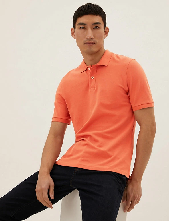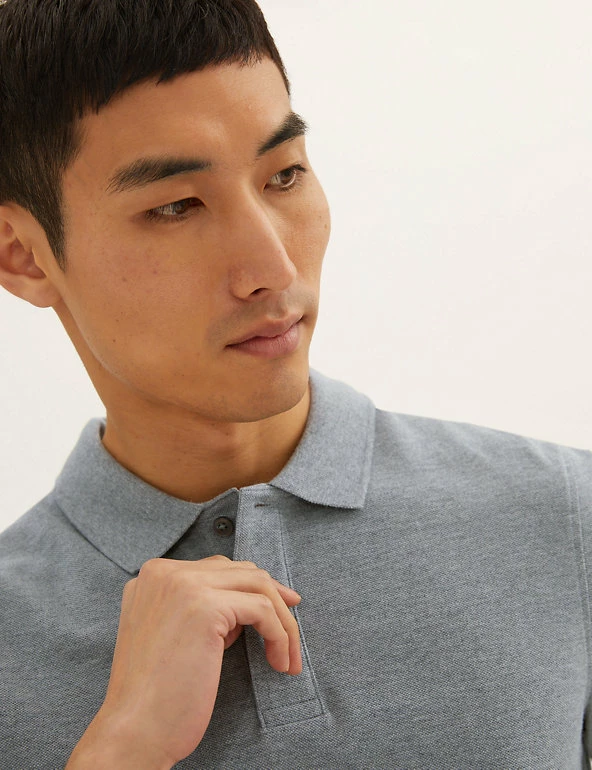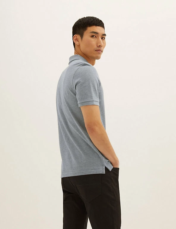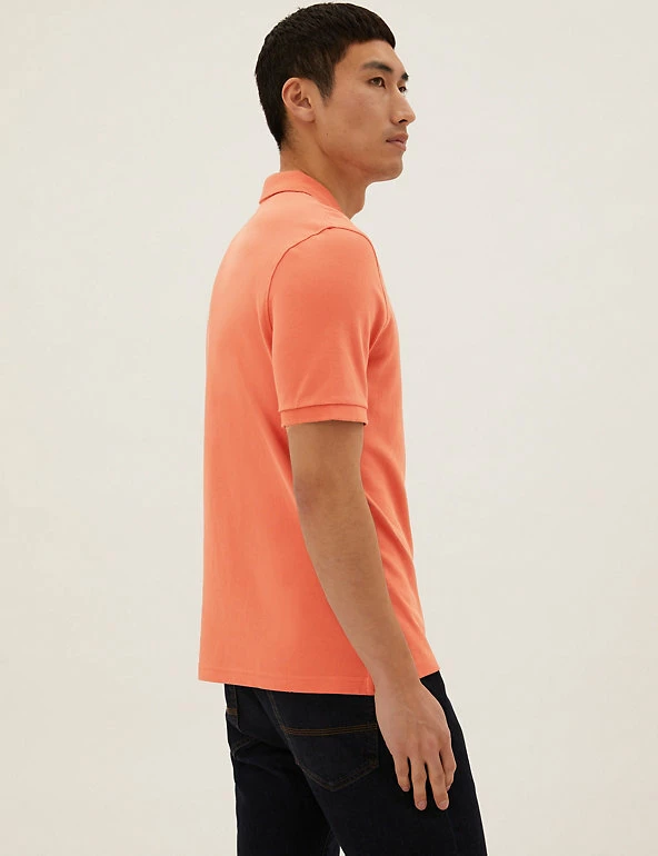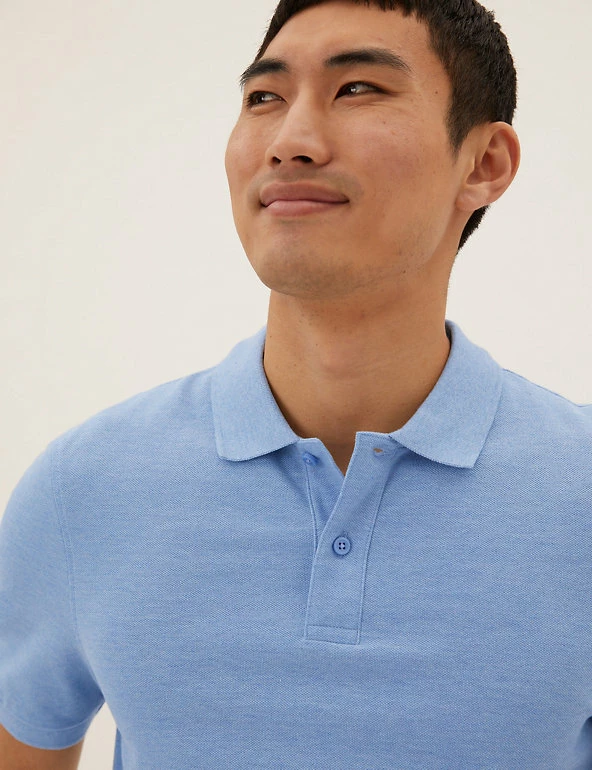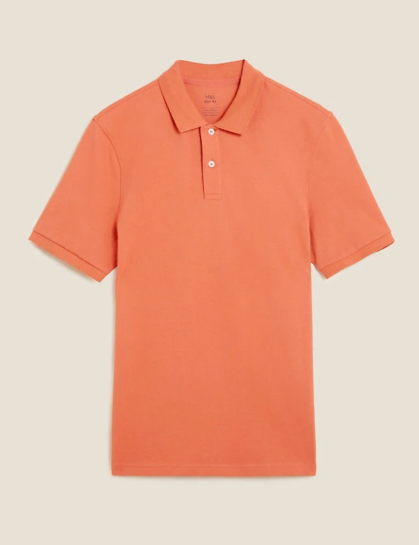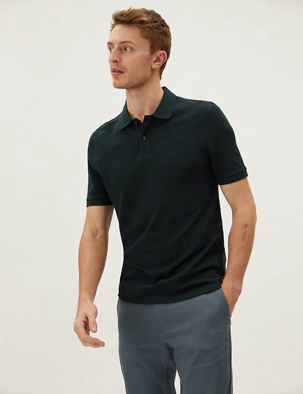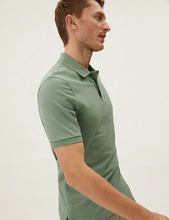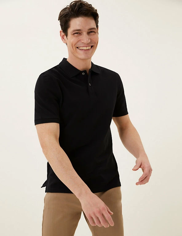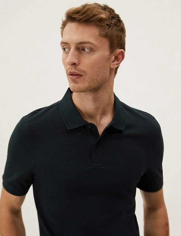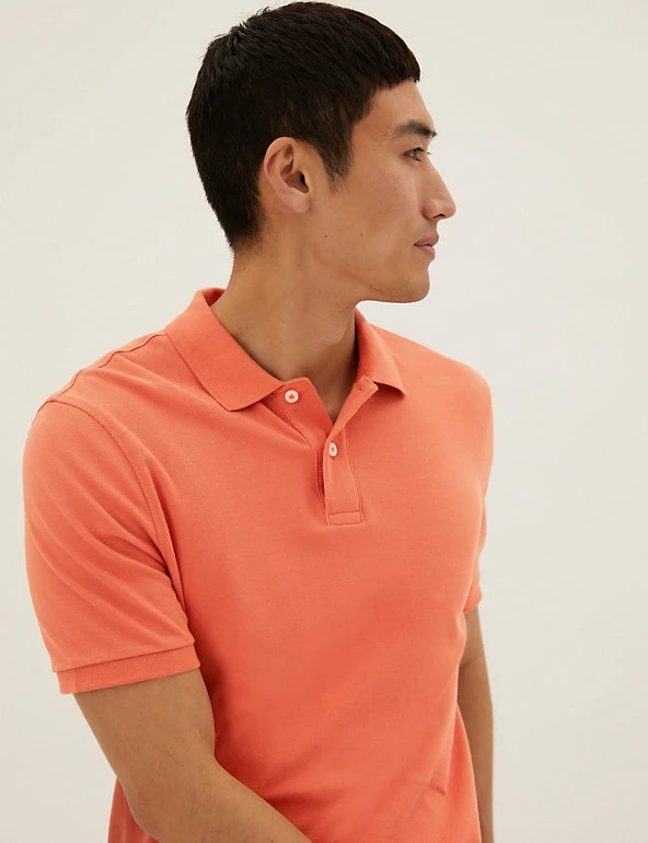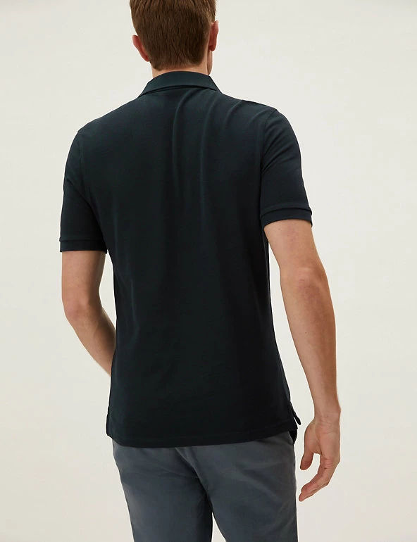 Timeless and understated, this pure cotton polo shirt is a perfect pick for laidback days. Sharp slim fit design. Delicately woven pique texture gives a premium feel, while side splits provide a touch of ventilation to keep you comfortable. We only ever u