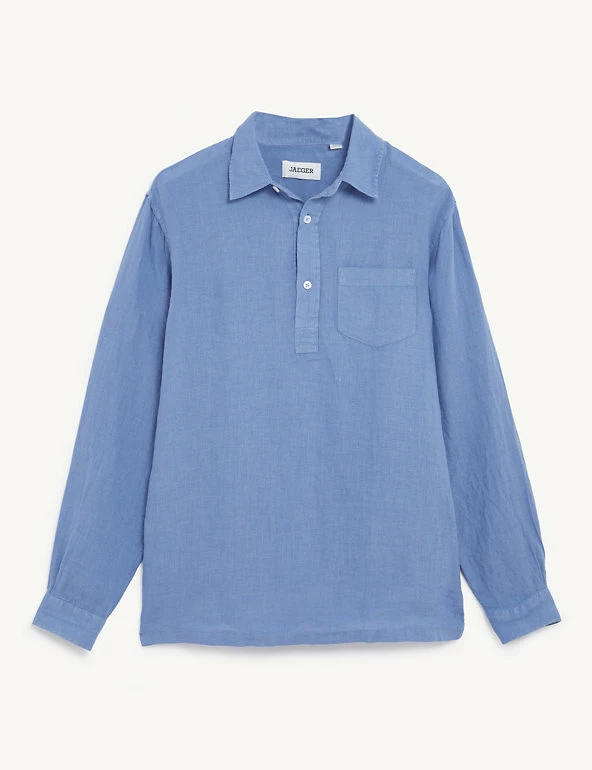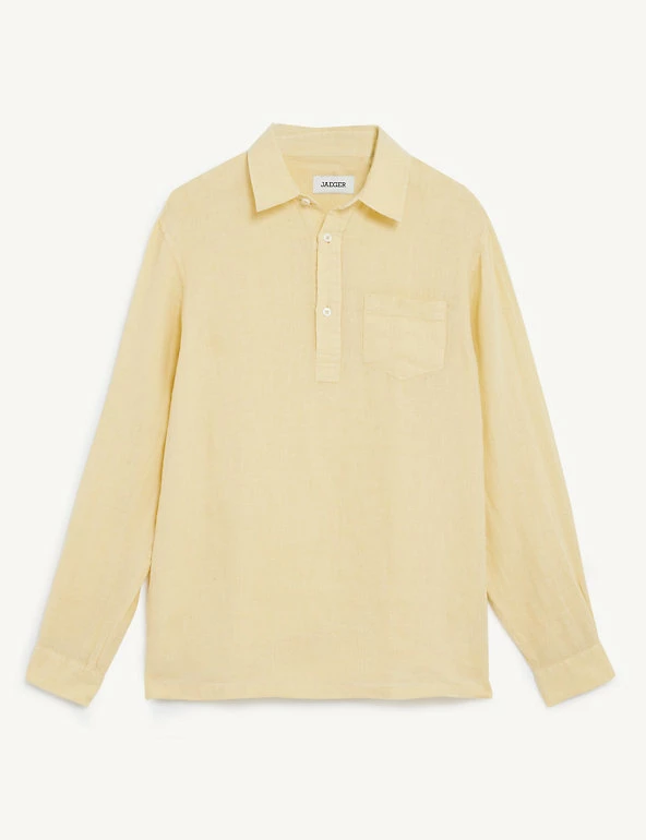 This Jaeger shirt is a relaxed take on tailoring, perfect for the warmer months. It’s designed in a regular fit from pure European linen cloth with a soft hand-feel for all-day comfort. This effortless overhead style features a classic collar and matching patch pocket, plus branded button fastenings. Team this easy-to-wear piece with chino shorts or linen trousers for a smart-casual summer look.