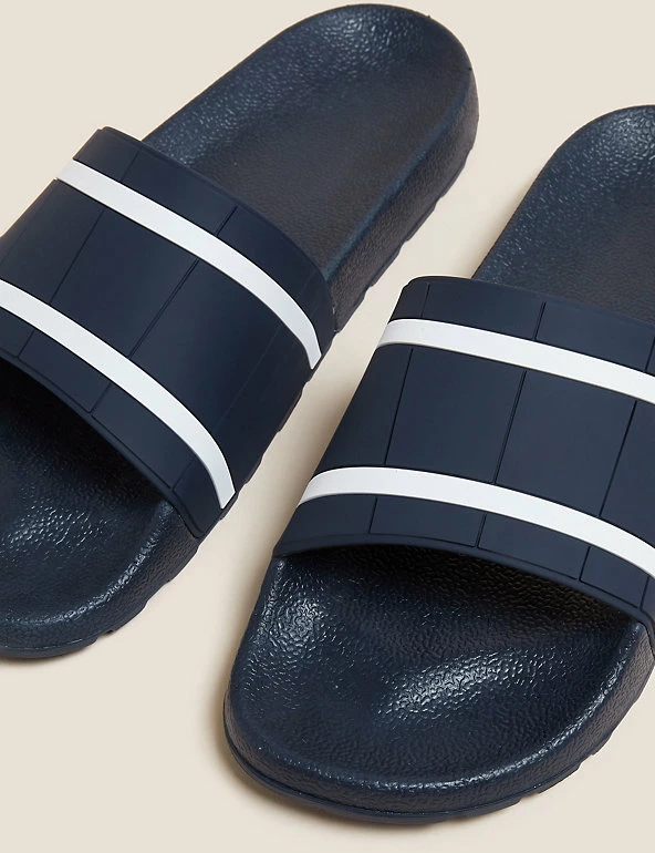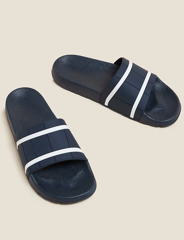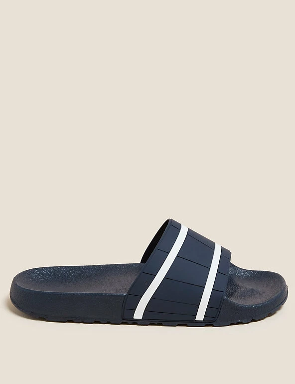 Superlight and waterproof, these sliders are perfect for pool days and changing rooms. Designed in a regular fit. Sporty stripes on the rubber straps and a comfy moulded footbed.