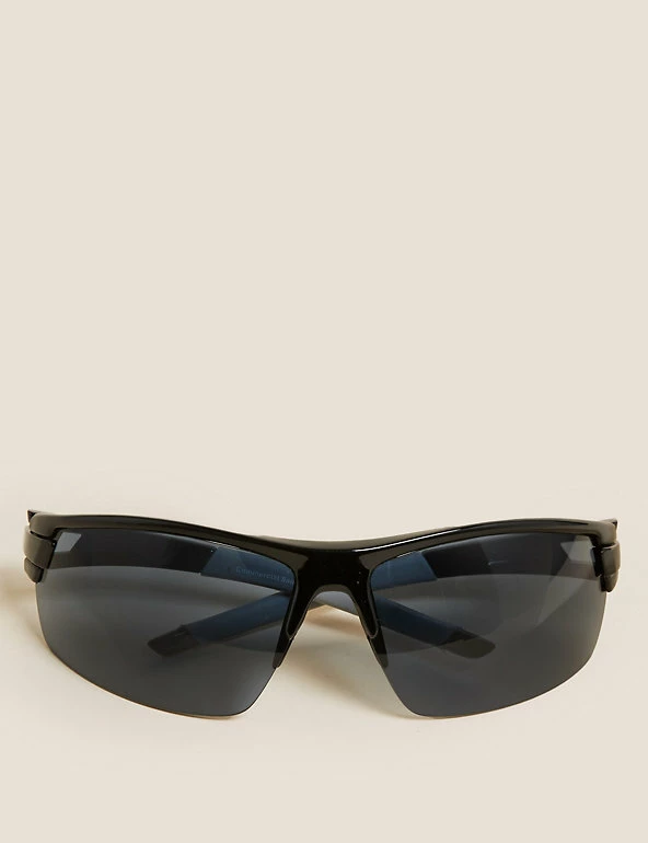 A semi-rimless design gives these sports sunglasses a classic look. UV Category 3: Excellent protection from the sun’s UV rays and suitable in intensive sun. Come with a soft carry pouch. Contain recycled materials.