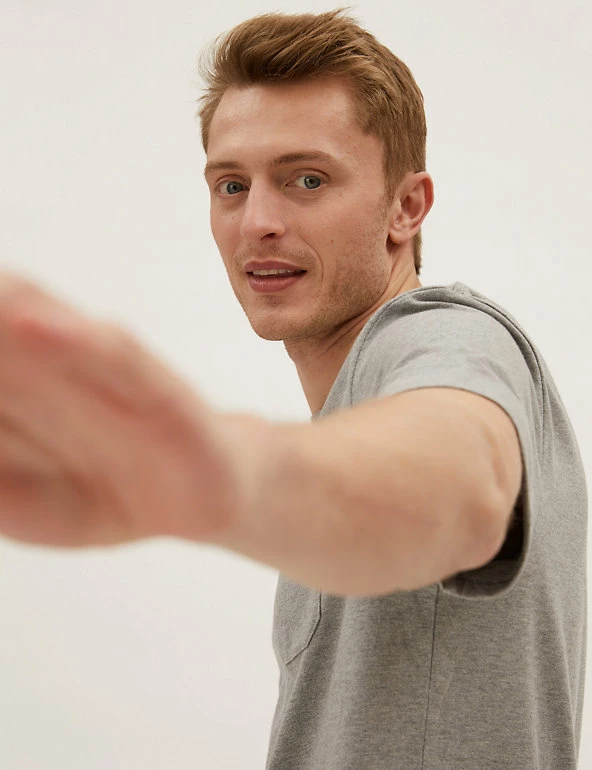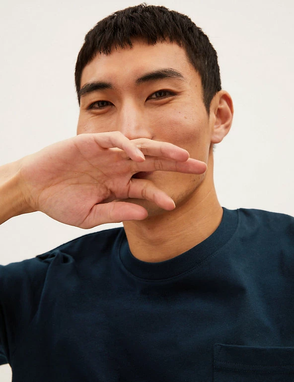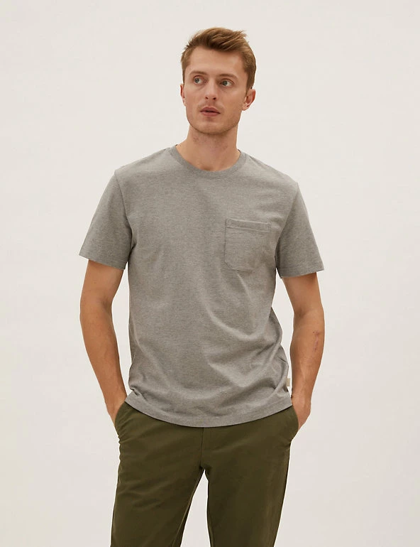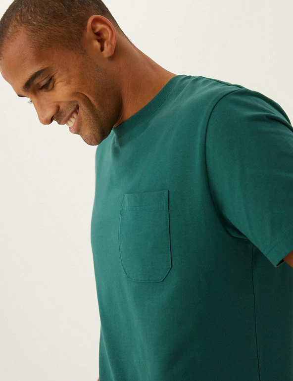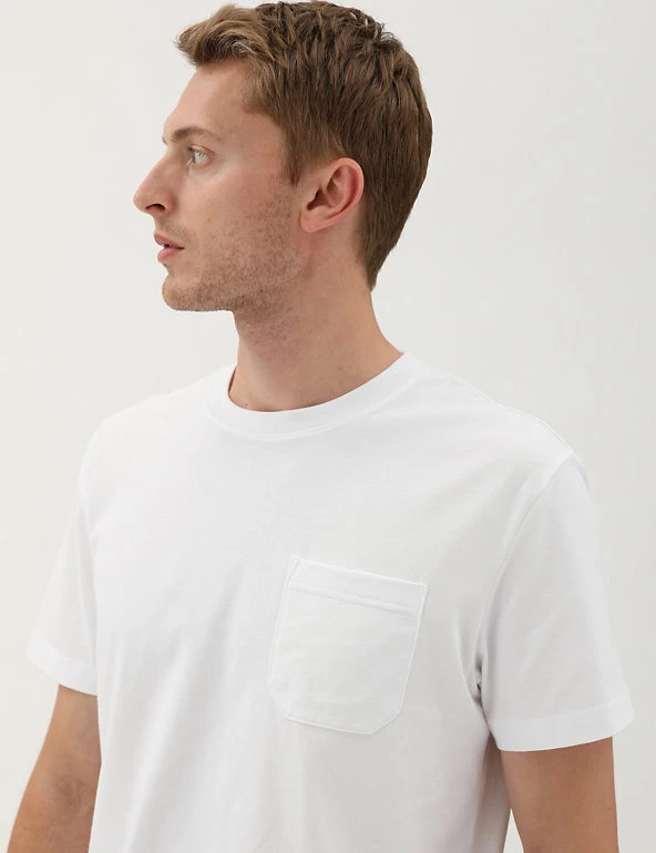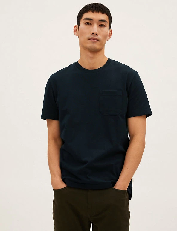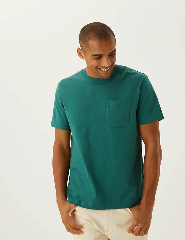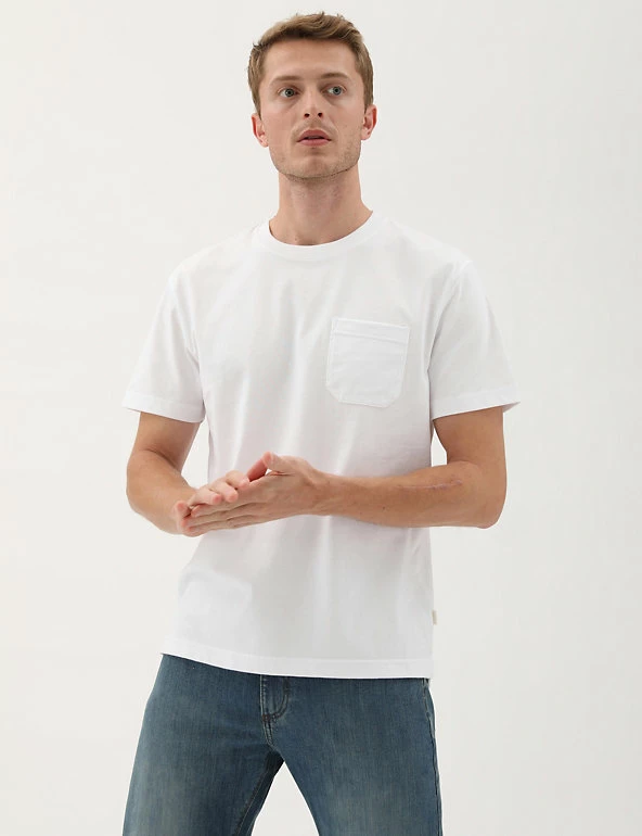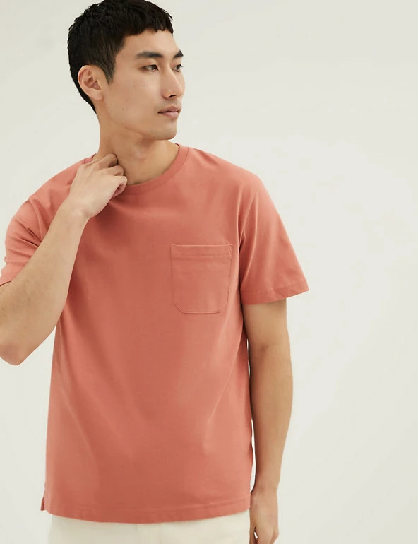 Less is more with this heavyweight pure cotton jersey t-shirt. Regular fit, with a crew neck for easy wear. Finished with a pocket on the chest. We only ever use responsibly sourced cotton for our clothes.