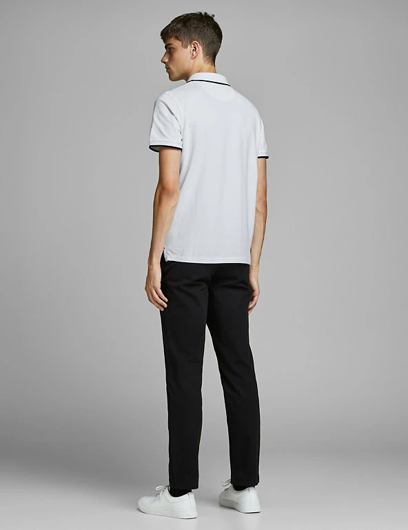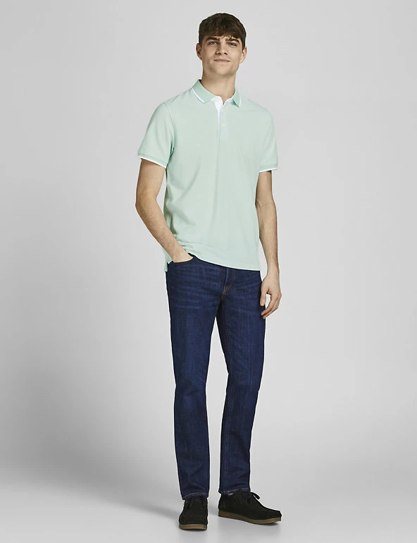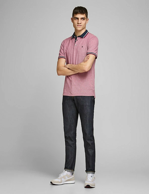 Crafted from cool and comfortable cotton, this JACK & JONES polo shirt nails laidback style. It’s designed in a close-fitting slim cut with a textured button-through collar. Tipped edges on the collar and sleeves and an embroidered logo on the chest give bonus style points.