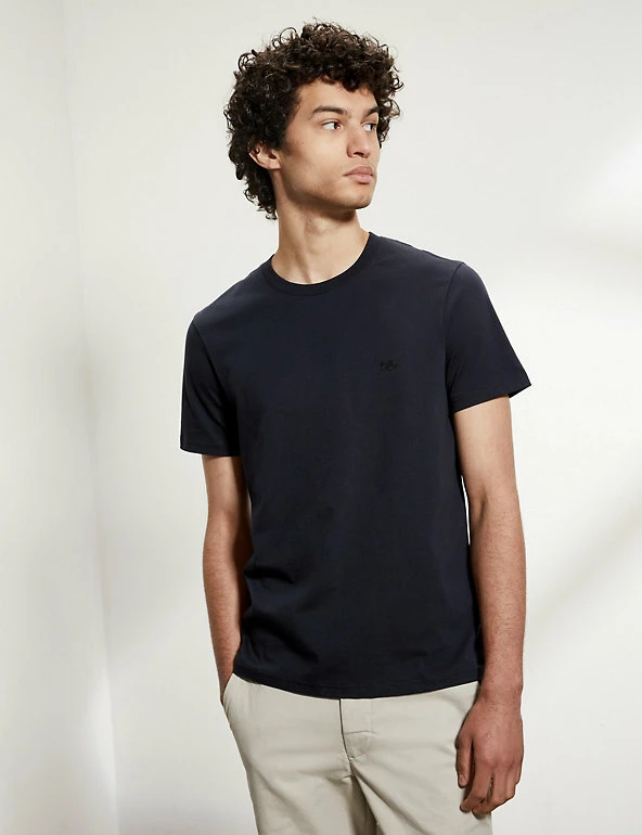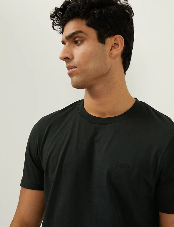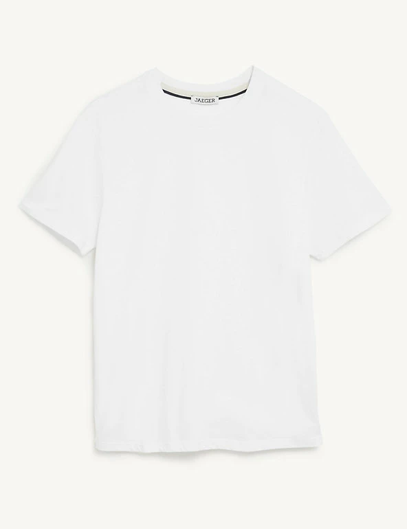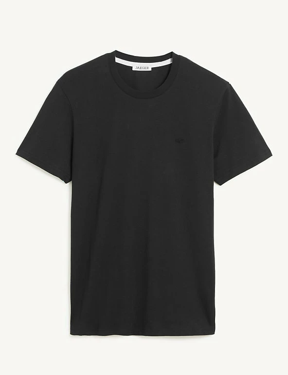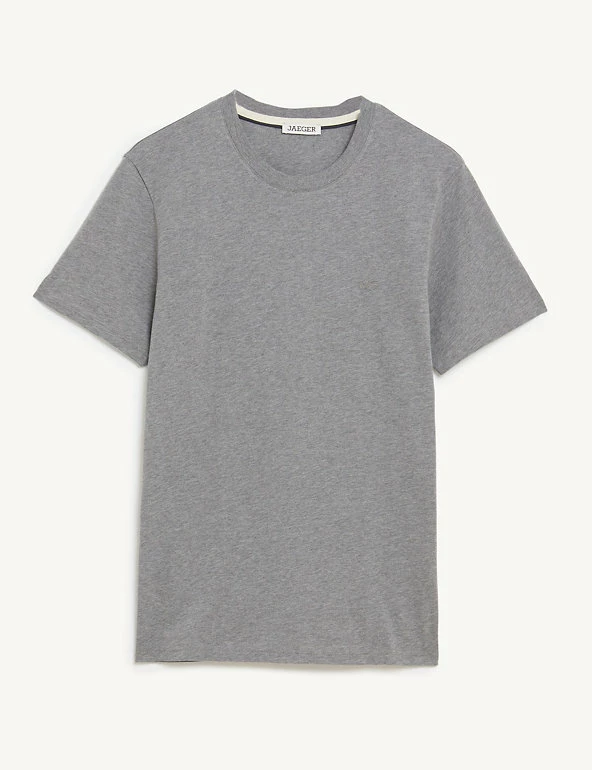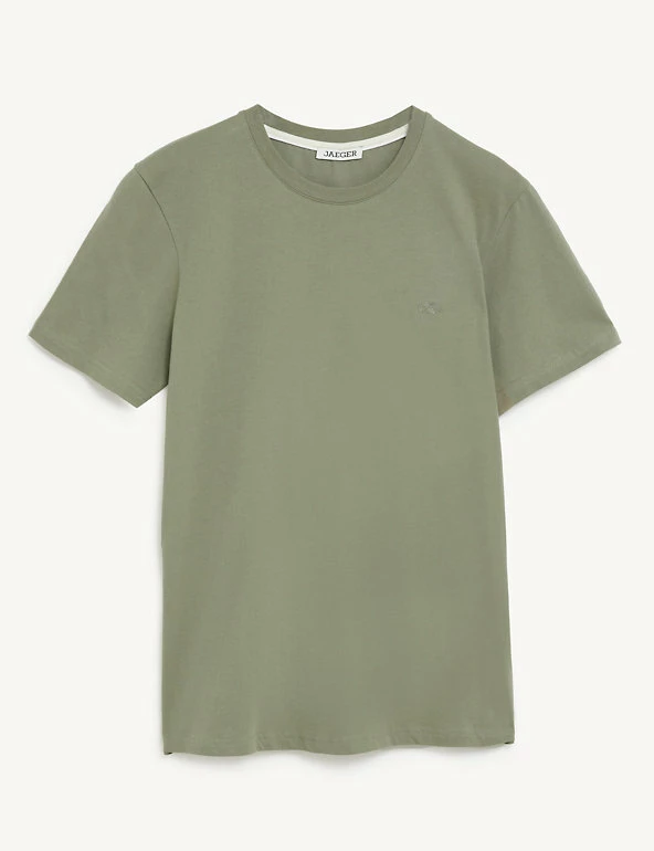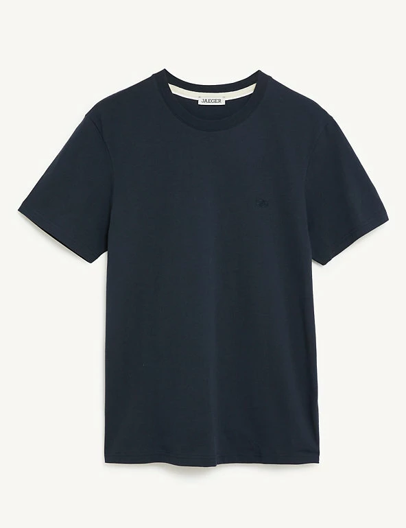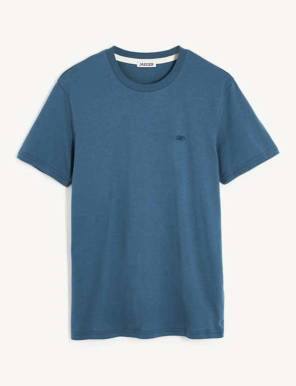 Add to your wardrobe staples with this pure cotton t-shirt from Jaeger. Crafted in a regular fit with a classic crew neck and cool short sleeves, this effortless piece provides classic style with minimum effort. It’s complete with subtle Jaeger knot embroidery on the chest.