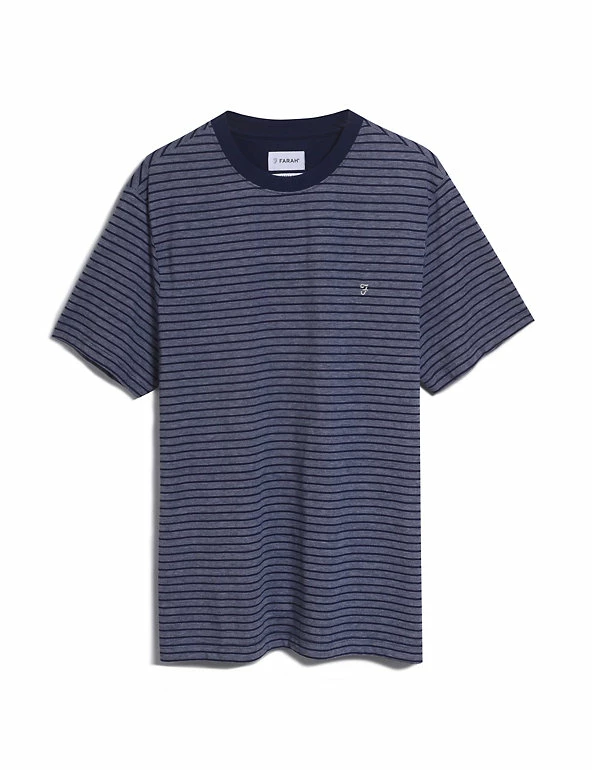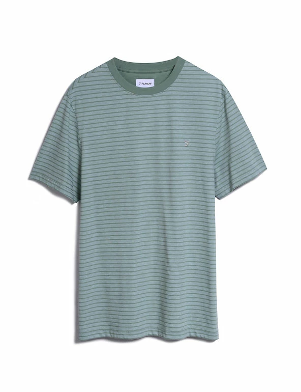 This cotton-rich t-shirt from Farah will see you through the summer in style. Cut to a regular fit, this comfortable piece has short sleeves and a contrast crew neck, plus classic all-over stripes. It’s finished with an embroidered logo on the chest. Made with organic cotton.