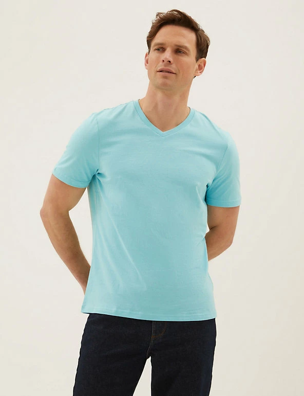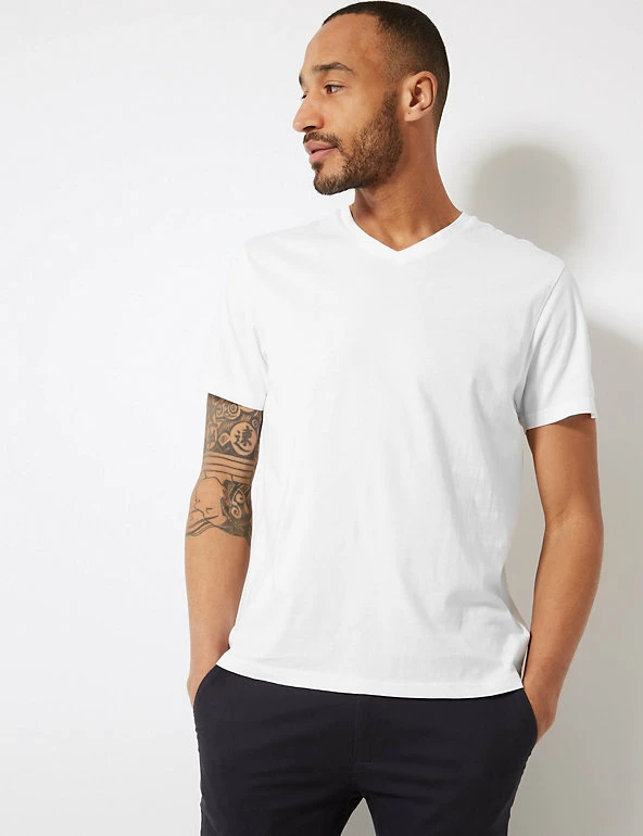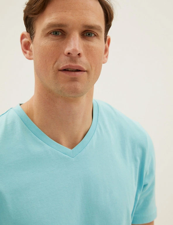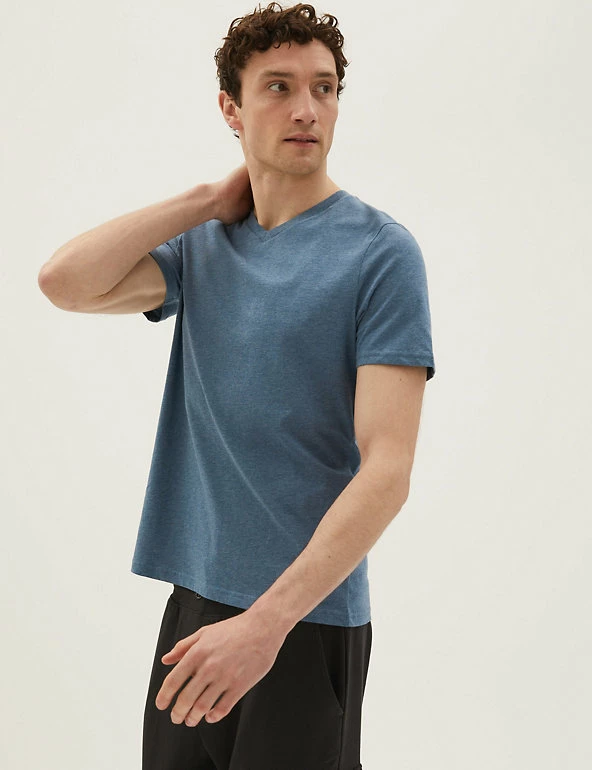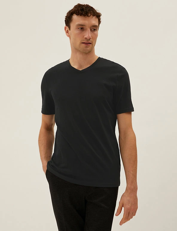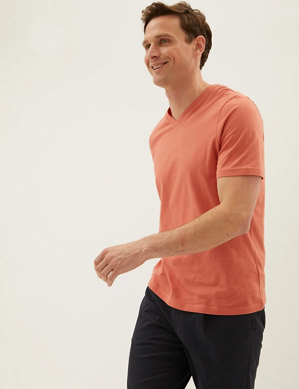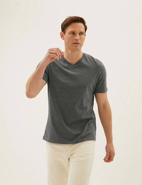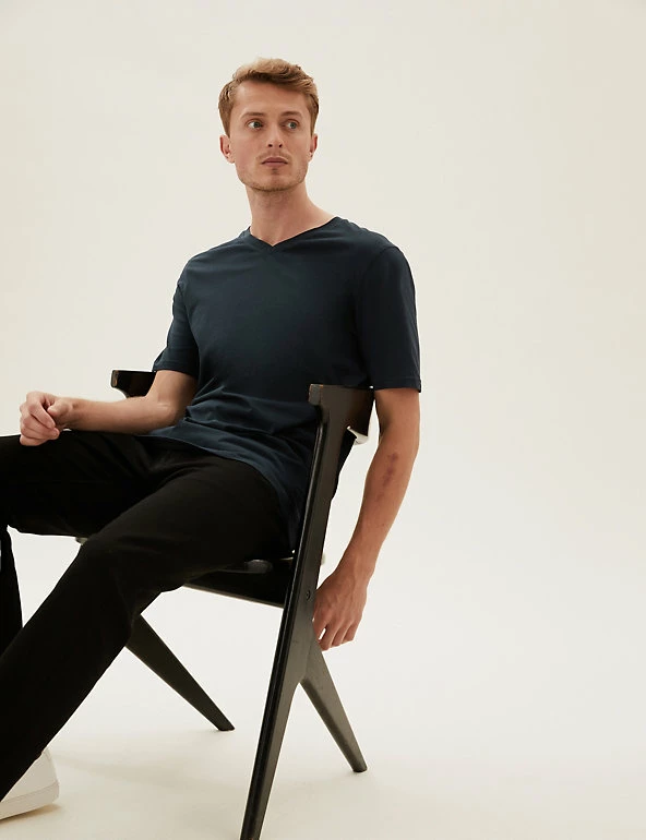 Add to your everyday essentials with this menโs t-shirt, featuring a slight v-neck for a classic appeal. A high-quality staple to wear again and again, this t-shirt for men has been crafted from soft and lightweight cotton to keep you comfy throughout the day.
