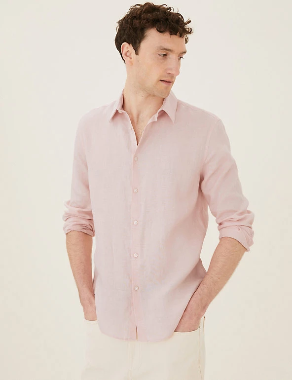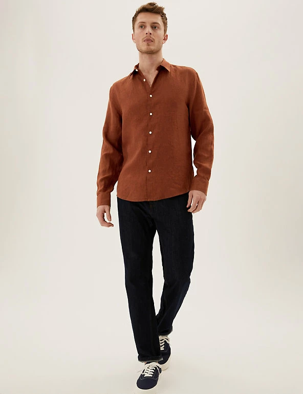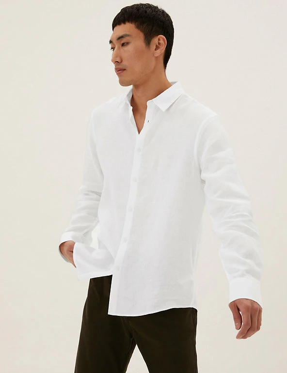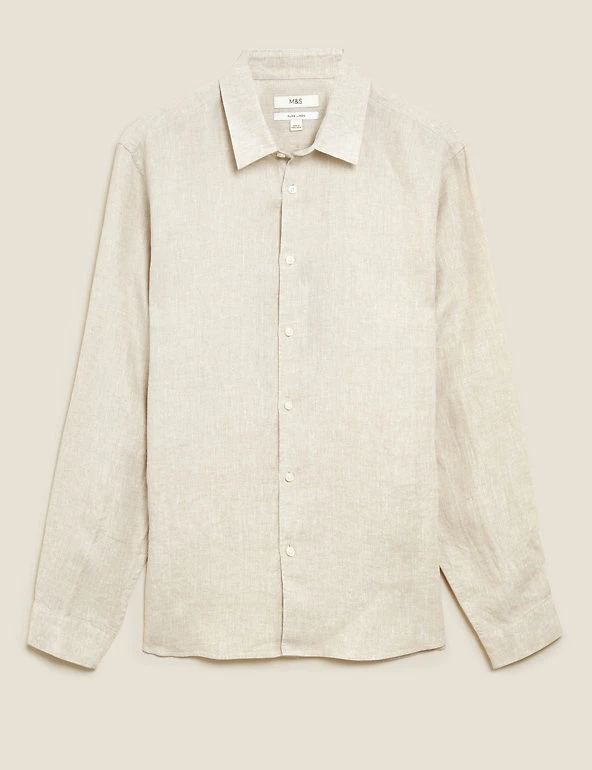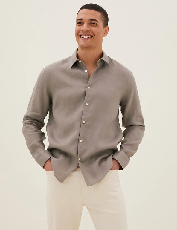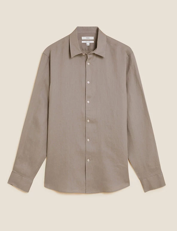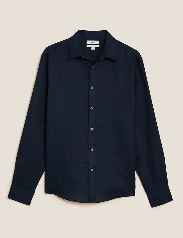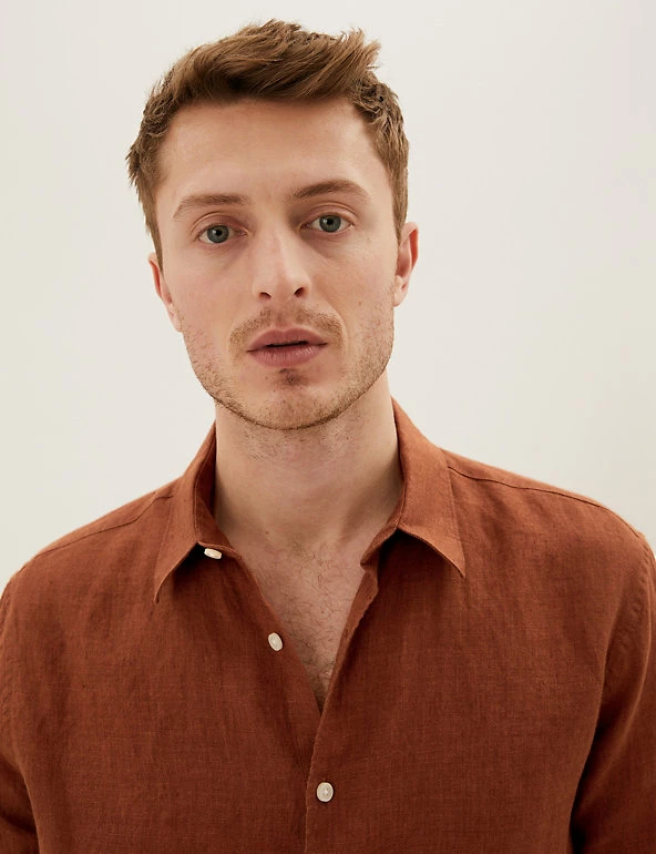 Choose this breathable pure linen shirt for smarter days. Regular fit with a classic collar and button-through fastening. Moisture-wicking fabric draws moisture away from your body, keeping you cool. An easy-iron finish means this shirt just needs a quick press and it’s good to go.