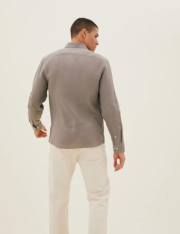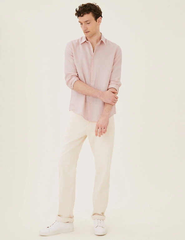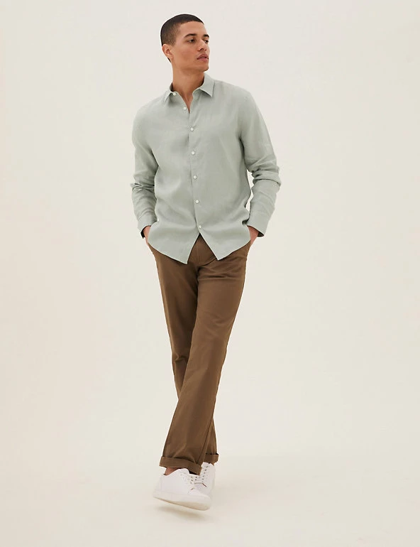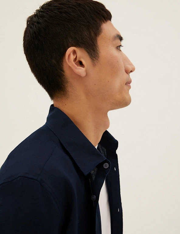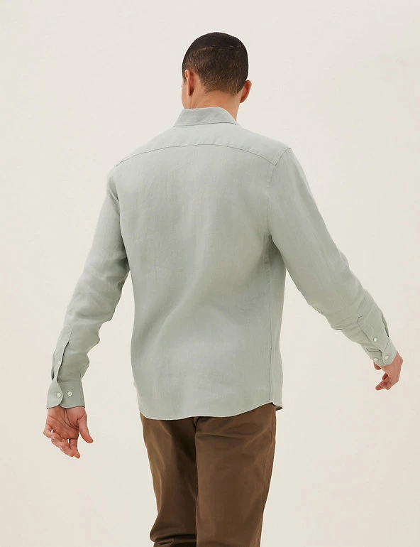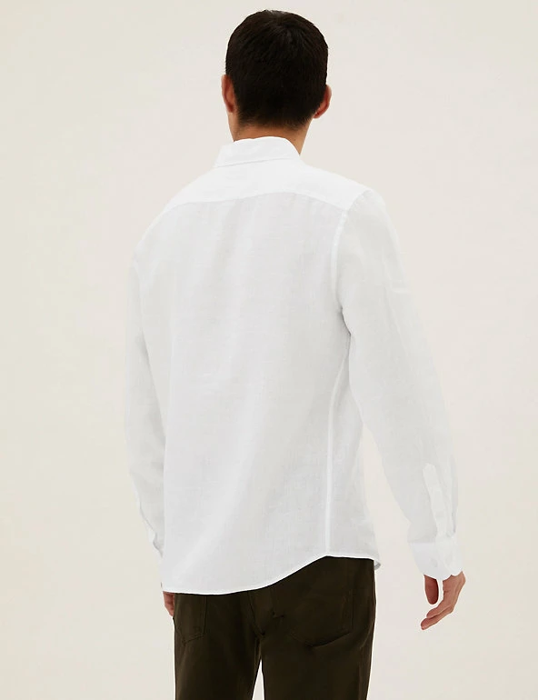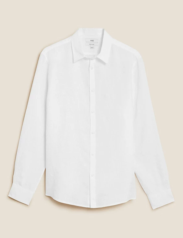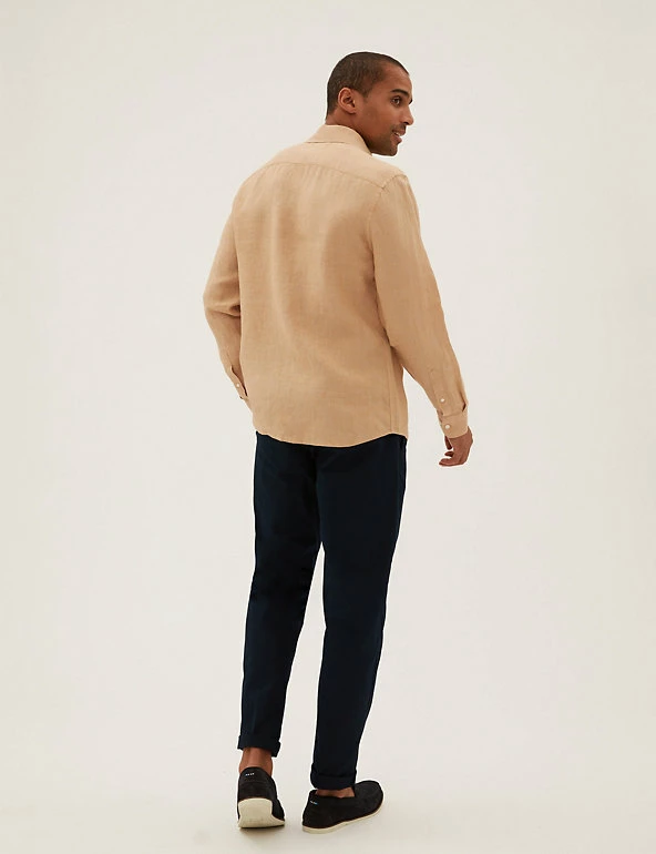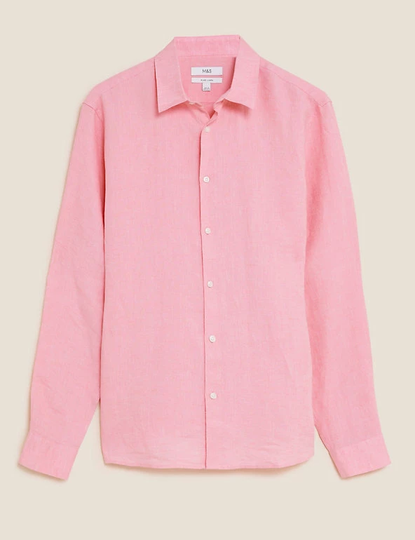 Choose this breathable pure linen shirt for smarter days. Regular fit with a classic collar and button-through fastening. Moisture-wicking fabric draws moisture away from your body, keeping you cool. An easy-iron finish means this shirt just needs a quick press and it’s good to go.
