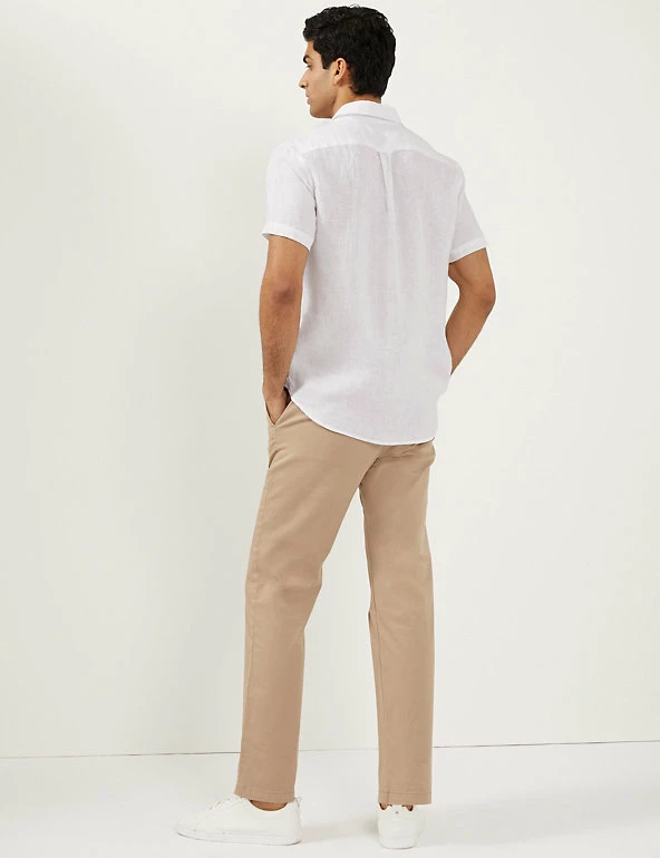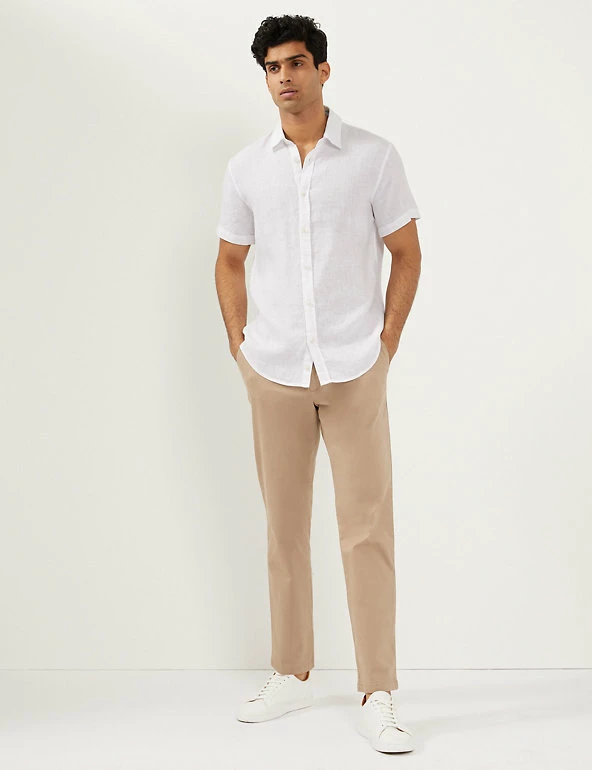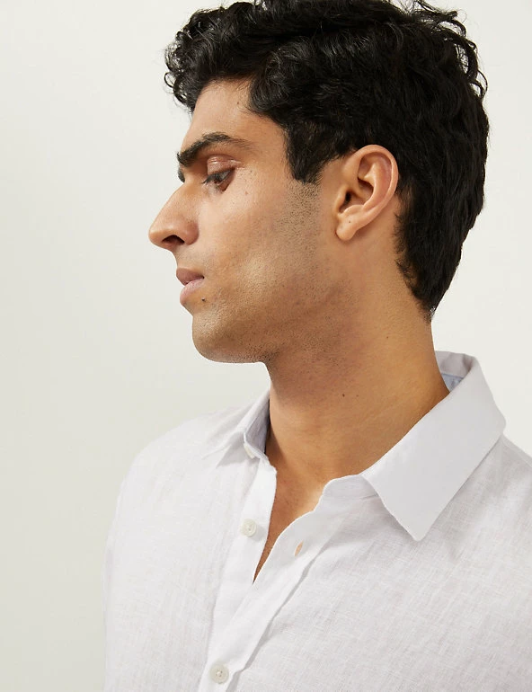 Create effortless day and night looks with this pure linen shirt from Jaeger. Designed in a regular fit, this versatile piece features a classic collared neckline and breezy short sleeves. Crafted from high-quality European fabric with a laundered finish, the shirt feels soft on the skin for ultimate comfort.