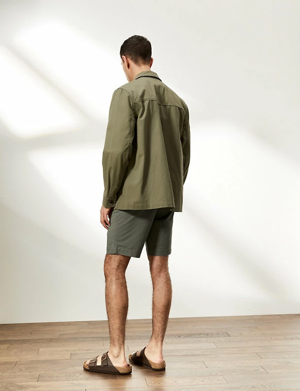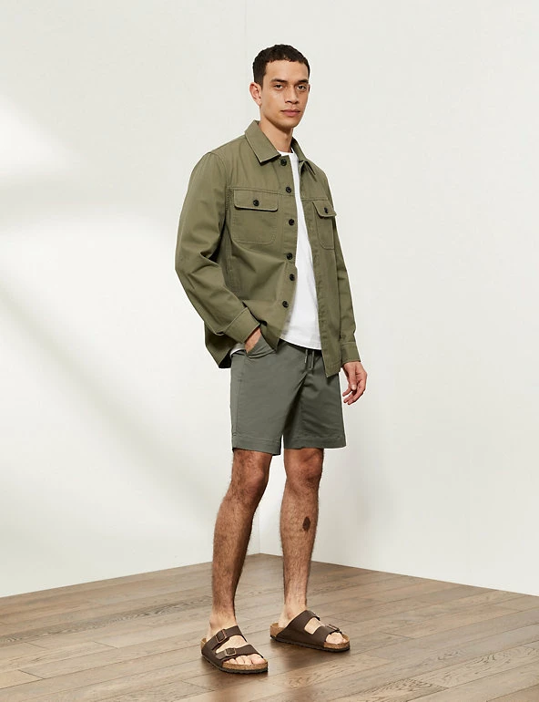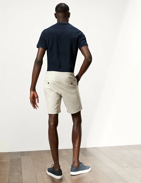 Comfort and style go hand in hand with these cotton-stretch shorts by Jaeger. They come in a classic regular fit, with added stretch and an easy drawstring waist. The flat front fly detail and buttoned welt pockets at the back keep them looking smart. Internal chambray fabric feels smooth against skin. These versatile shorts can be worn right through the summer for outdoor events, holidays and simply relaxing at home. A discreet ‘J’ logo at the back lends a subtle branded touch.