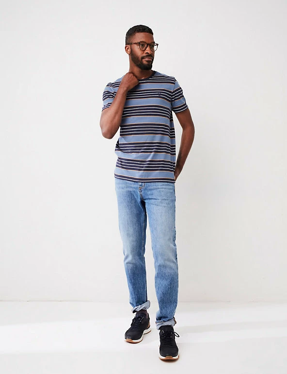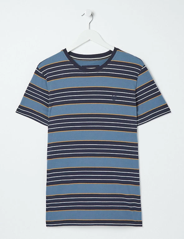 Crafted from pure cotton with colourful stripes, this FatFace t-shirt will become a favourite for off-duty days. It’s cut in a comfy regular fit with a classic crew neck. Logo embroidery at the chest gives the tee a signature finish. Made with cotton.