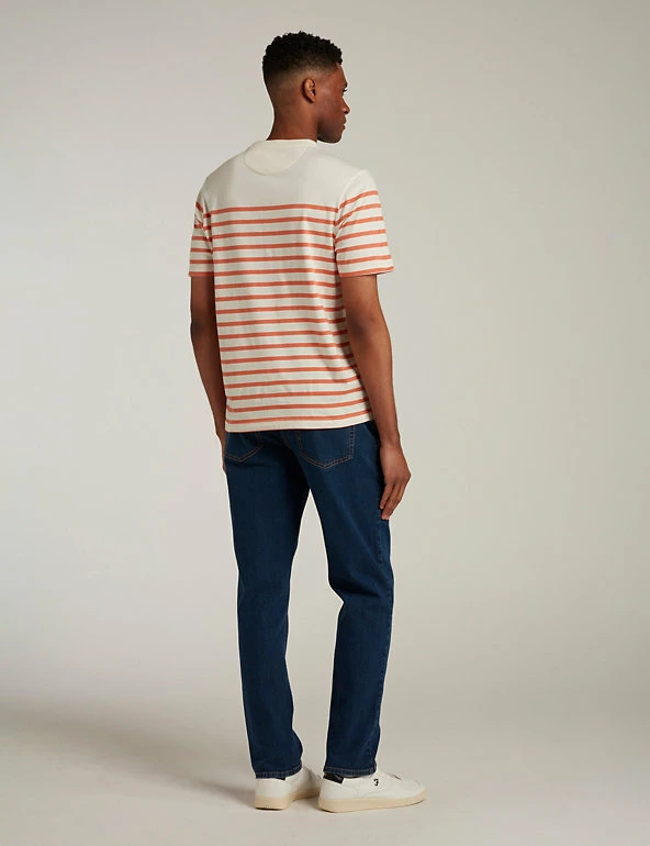 This pure cotton t-shirt from Farah features Breton-style stripes for timeless style. It’s cut to a comfortable regular fit, with cool short sleeves and a classic crew neck. An embroidered brand logo completes the look. Made with organic cotton.